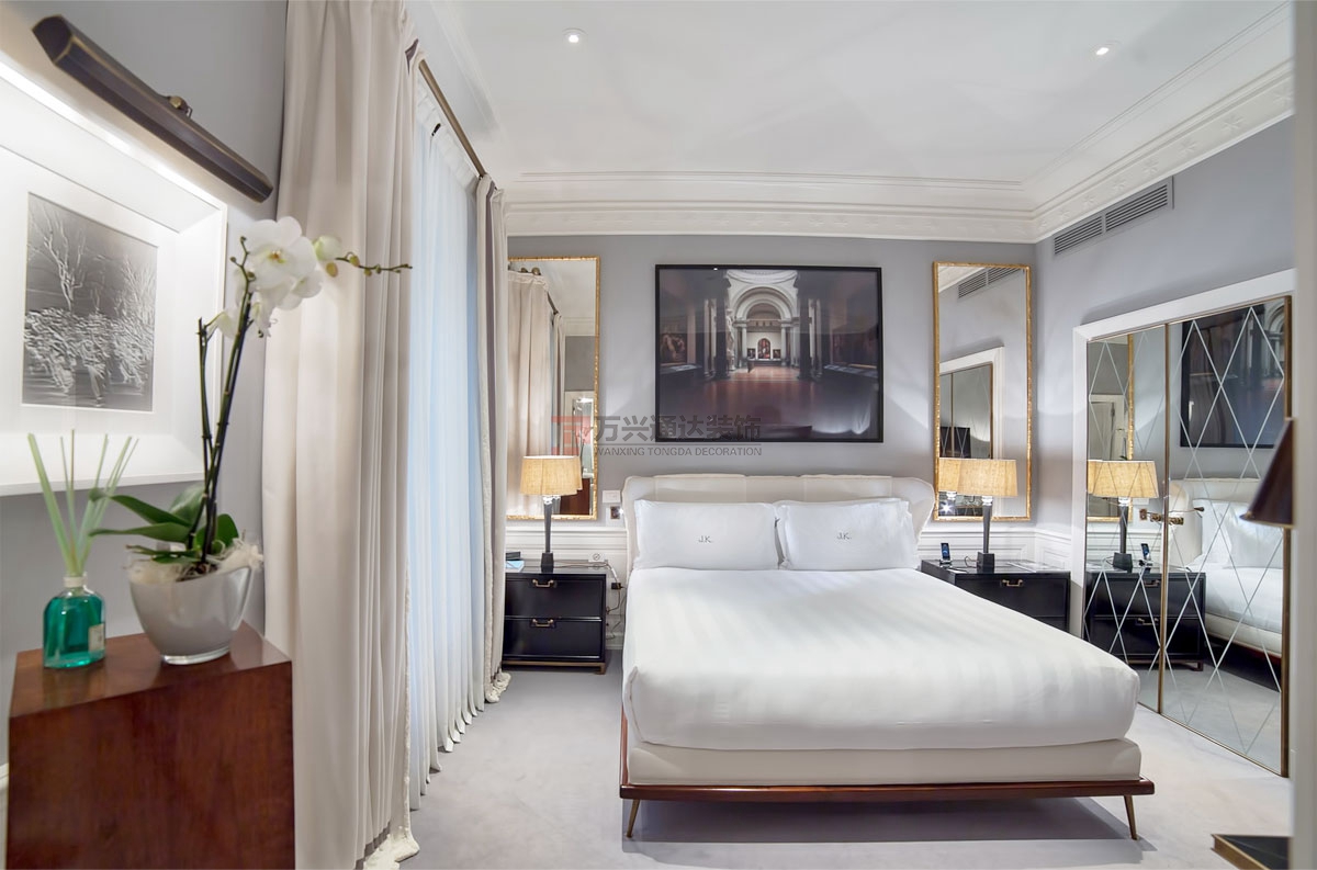 北京装修公司案例:鸿洲游艇国际酒店设计装修效果图酒店客房,配有别墅设施:露台, 电话, DVD播放机, 有线频道, 平面电视, iPod音乐基座, 保险箱, 空调, 熨斗, 书桌, 熨衣设备, 客厅角, 电风扇, 私人游泳池, 衣柜/衣橱, 淋浴, 浴缸, 吹风机, 浴袍, 免费洗浴用品, 卫生间, 浴室, 拖鞋, 迷你吧, 电烧水壶, 咖啡机, 唤醒服务, 闹钟等设施。